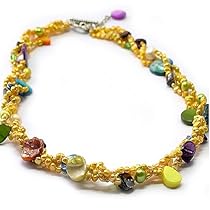 Candygem Genuine 3 Row Yellow Dyed Pearl & Multicolor Hand Carved Sea Shell and Mother of Pearl Necklace from Nicolette Berman's Love of Nature Collection. Review: Read more »