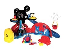 Fisher-Price P9997 Mickey's World Clubhouse Pieces all store inside playset. The Clubhouse has 7 different play areas, including the Garage, Kitchen, Bedroom, Observation Deck, Mouskadoer room, living room and hot air balloon Watch the bed pivot in the bedroom or ride down the slide ...
